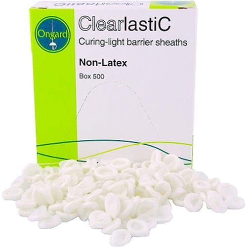 Ongard Clearlastic Non Latex Barrier Sheaths are designed for light curing tips.