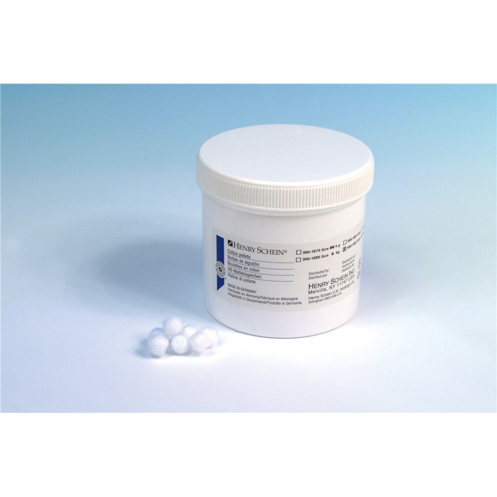 Cotton pellets for applying medicaments or to dry cavities. Diameter 7.6mm. 10g jar
