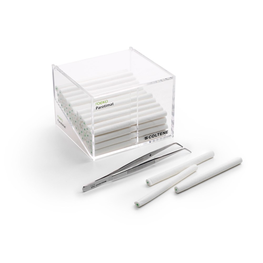 Parotisroll dispenser holds 50 Parotisrolls. The dispenser enables individual removal and hygienic storage of Parotisroll.Dimensions 112 x 103 x 82 mm