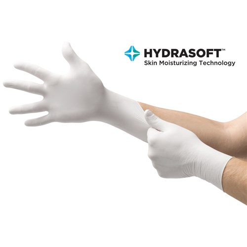 White nitrile medical exam glove with HYDRASOFT™ Skin Moisturizing Technology