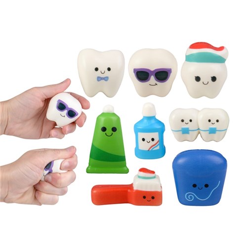 • These individually wrapped dental squish toys are sure to bring a smile to your patients face.