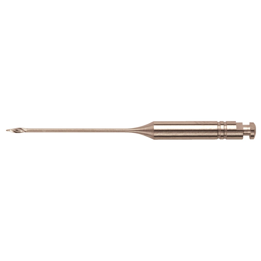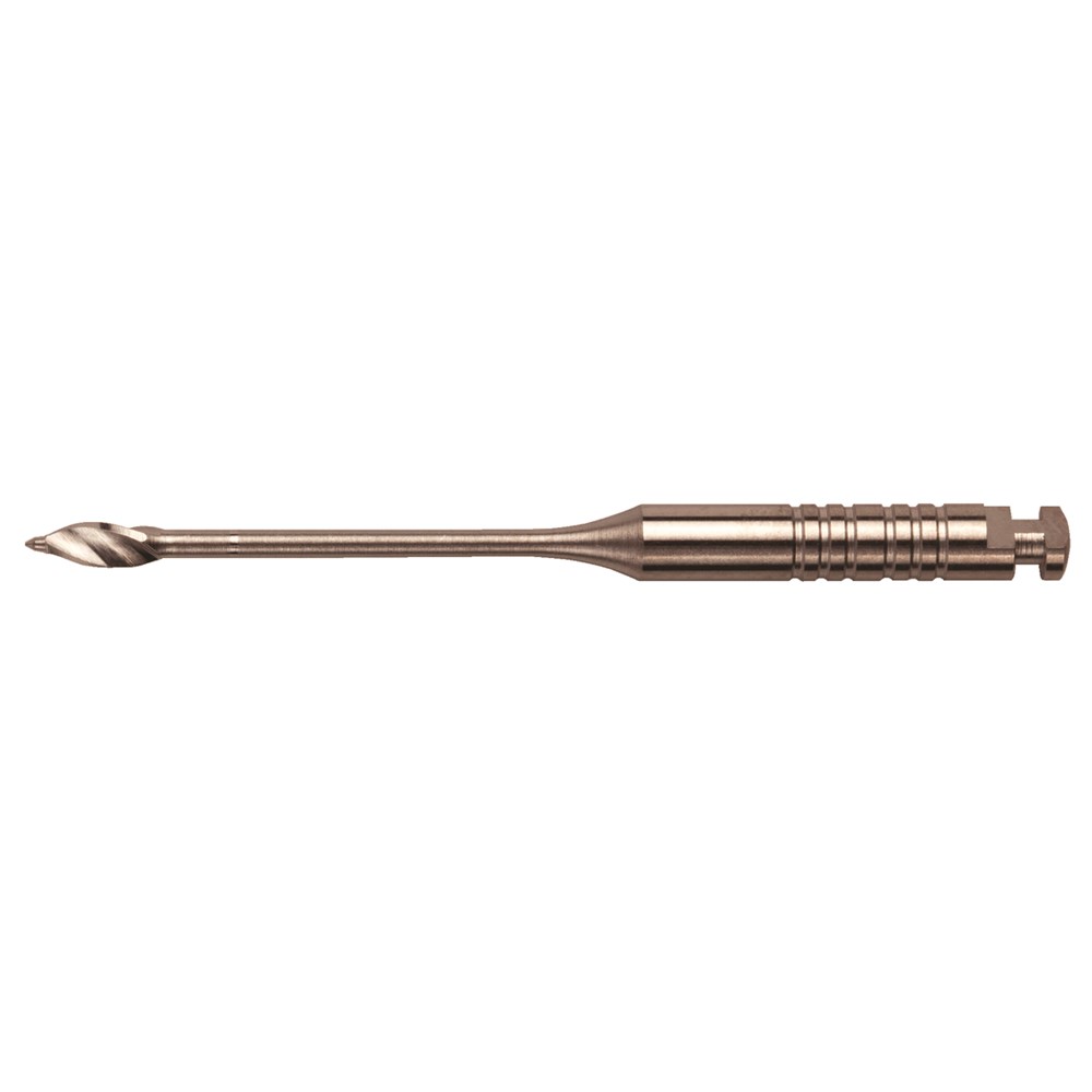 Use with a slow speed handpiece to widen the canal orifice after the canal has been initially prepared. Features blunt tip to prevent perforation and provides a better tactile sense. Sizing bands on shank for easier instrument identification. Made from stainless steel. Made in Switzerland.