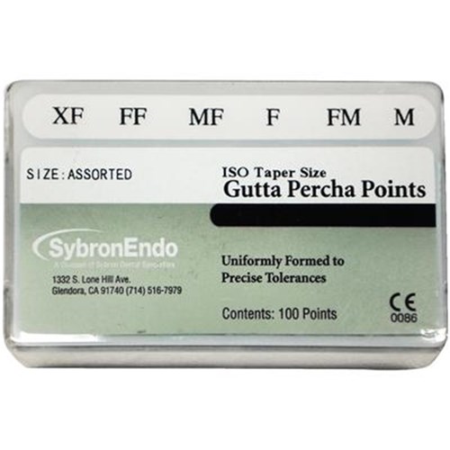 Contains: 100 gutta percha (XF, FF, MF, F, FM, M)