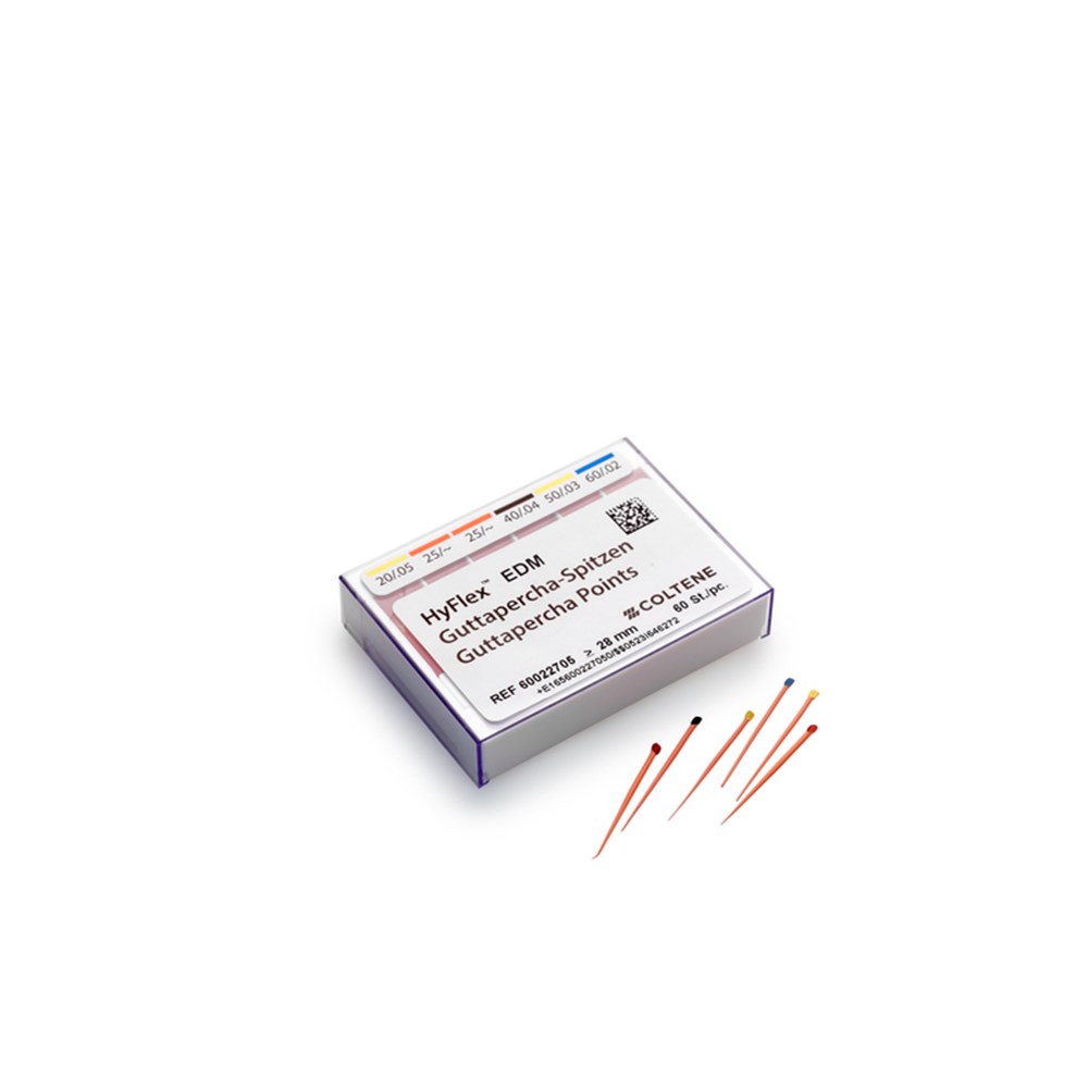 HyFlex CM guttapercha points are ideal for obturating root canals which have been prepared with HyFlex CM files. At the tip of the point the diameter corresponds to the ISO sizes, but then the conicity follows the one from the CM files.