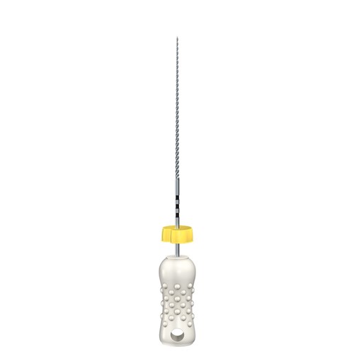 Manual file for probing and checking patency of the root canal. Stainless, heat-strengthened steel. Size 015, 25mm, sterile Pk of 6 Short Plastic Handle