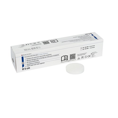 Universal foam pads, 5 cm diameter, 1 cm thick, 25/bx. Fits all round Endo organizers.