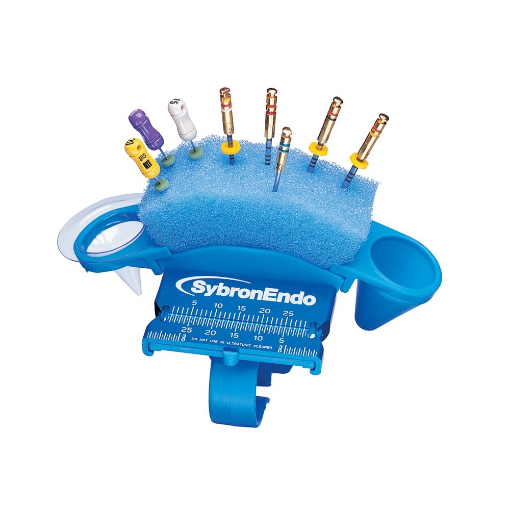 A convenient way to hold endodontic instruments and canal lubricant during a procedure, the EndoRing features an easyto- read ruler with rubber stop port, allowing quick measurements of files up to 30mm (at 1 and 1.5mm increments) for both right and left handed clinicians. Autoclavable.