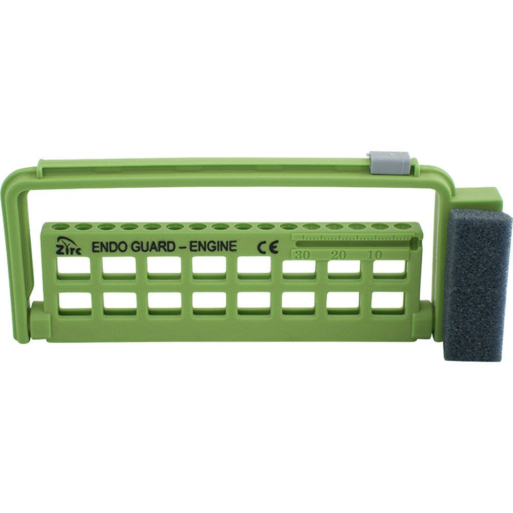 A unique delivery system to organize, store and sterilize endodontic files and reamers. The Endo Guard swivels 360o with stops at every 45o for operator''s choice. Large slotting provides complete visibility and draining during cleaning