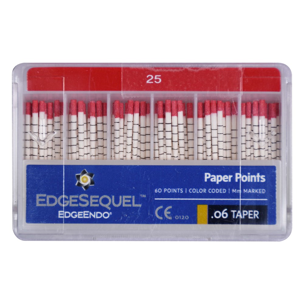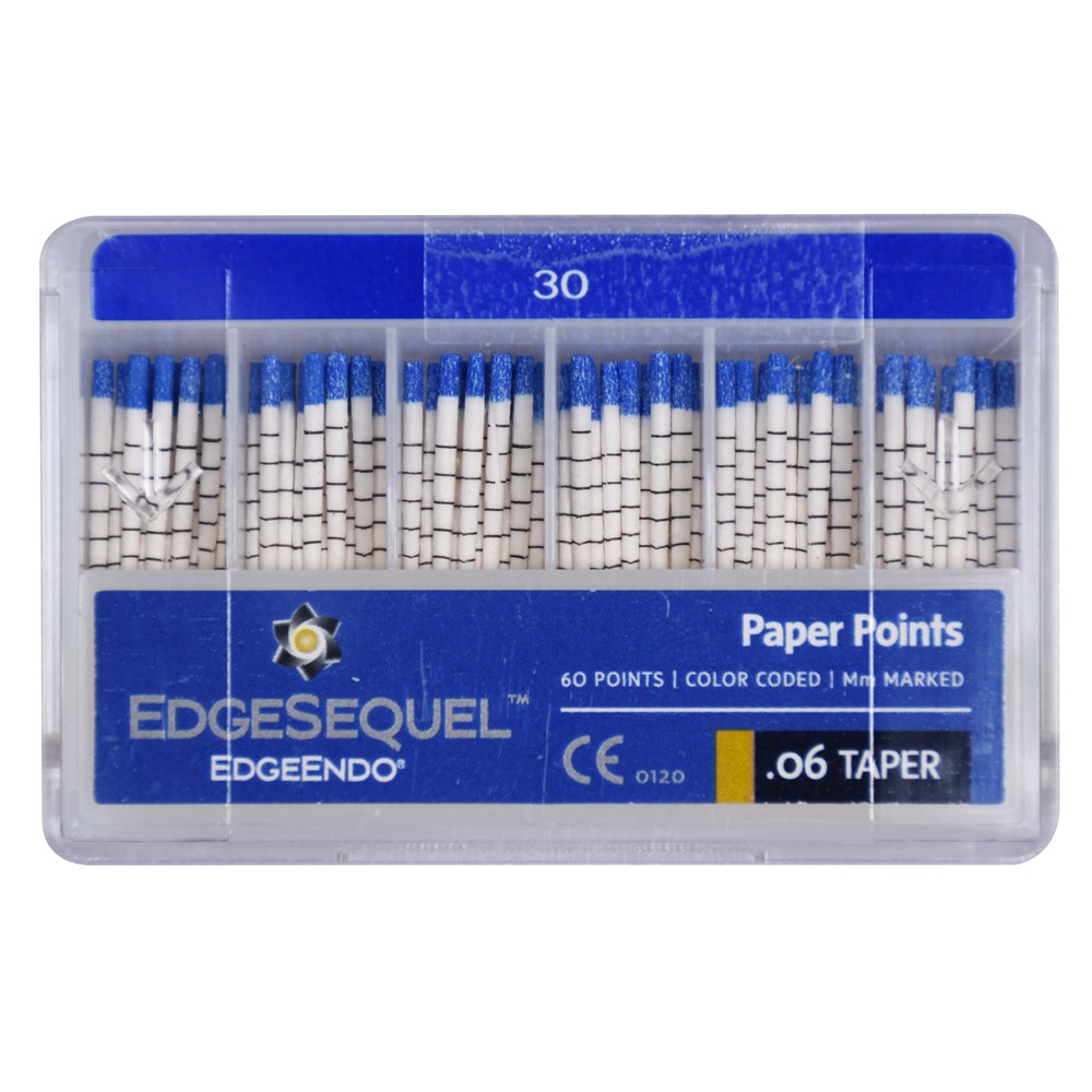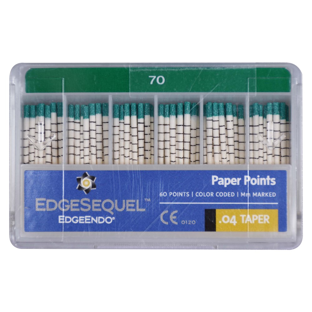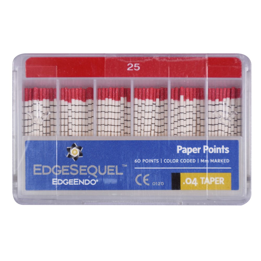 Our paper points are highly absorbent and come in sterlized packaging. They come in all the standard sizes, from 15 to 50 in .04 and .06 taper. Points are standard length 29mm +/-1 with marked lengths for accurate insertion. Each box comes with 60 points.