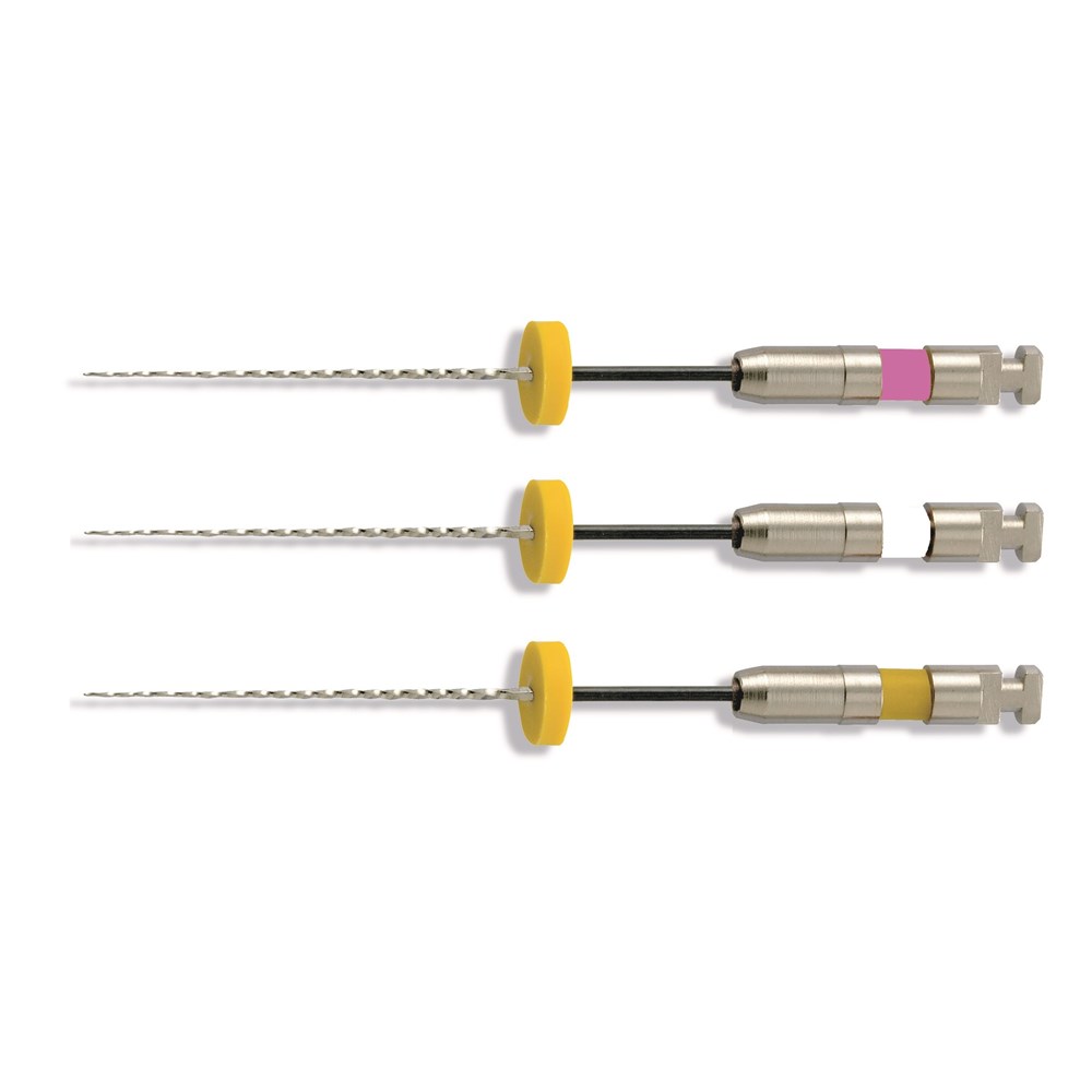 EndoWave MGP “Mechanical Glide Path” Kit NiTi files for mechanically enlarging canal access. At the start of preparation the enlargement of the coronal canal section, i.e. the creation of an access which is as straight as possible to reduce friction of the subsequent preparation instruments. With the new EndoWave MGP files, it is also easy to prepare and enlarge the area in the crown with a handpiece. Greater safety during root canal preparation!. The enlargement of the crown canal sections also allows effective cleaning and disinfection since the effective volume and circulation of rinsing liquid is increased. The instruments can operate at a speed of 800 rpm.