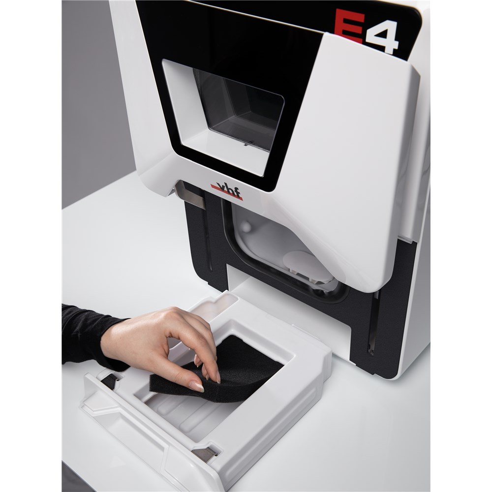 The optional dry container enables you to mill materials such as zirconia, PMMA and various composites with your E4 with no cooling water or compressed air.