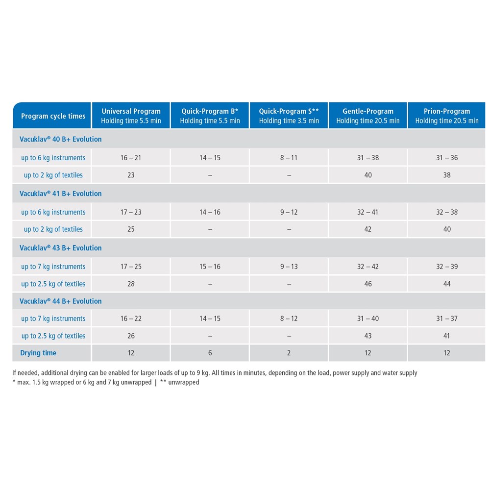 • Patented double-jacket technology: Record-breaking operating times of 10 – 20 minutes (Quick-Programs incl. pre-vacuum and drying) guarantee even faster instrument availability.