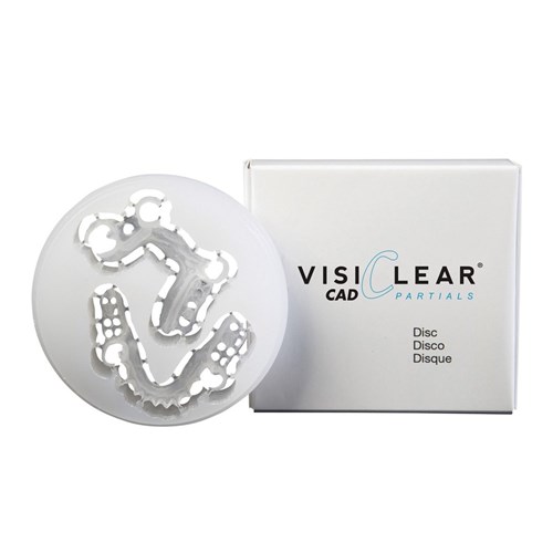 It can be milled or injected, and it is also available in a 400g jar for making clasps with the HotShotElite. VisiClear CAD integrates seamlessly into a digital workflow and is available in 15mm, 20mm and 25mm disc sizes.