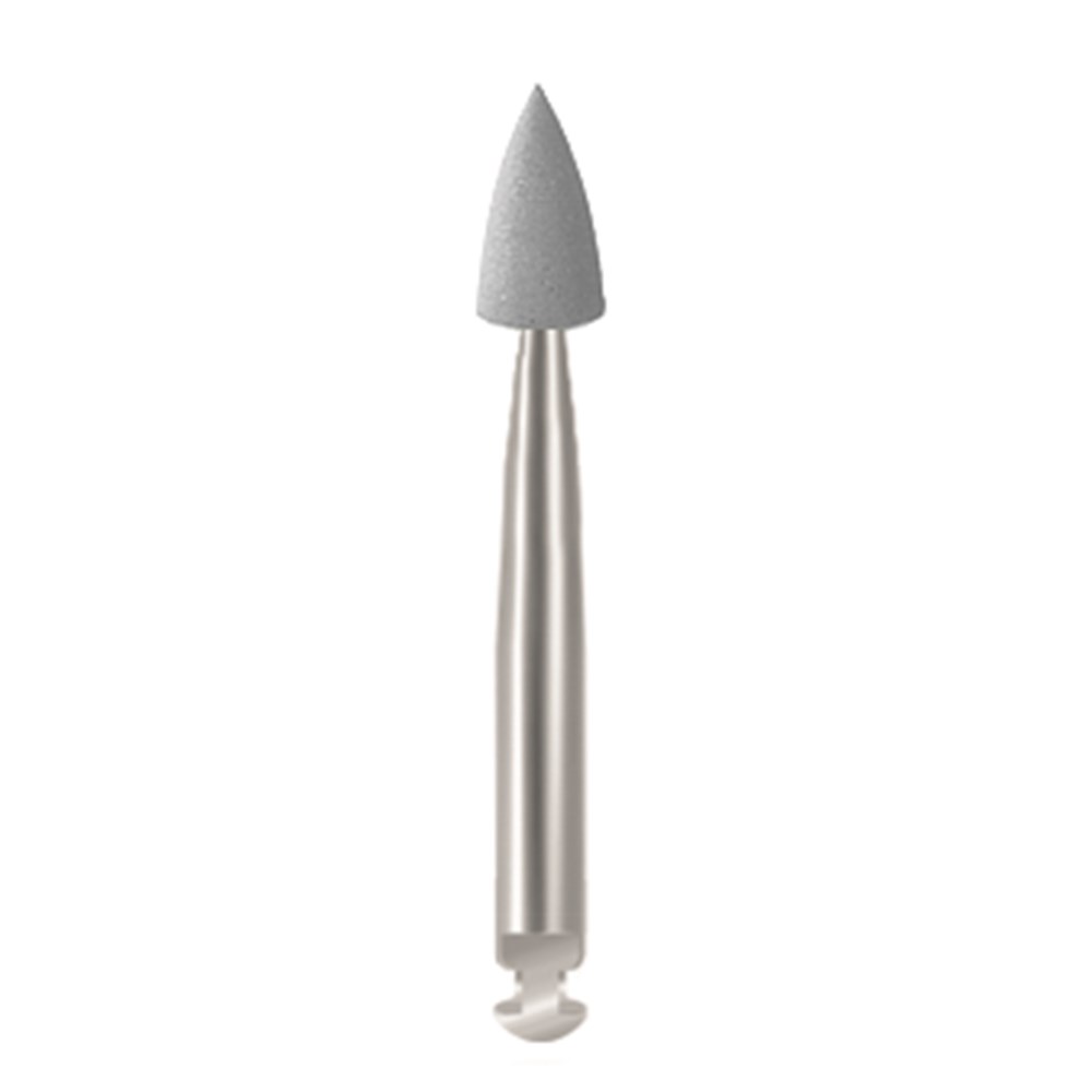 Two-step diamond polishing system for composites. The first step uses Medium polishers for finishing and contouring. The second and final step uses Diamond coated polishers for a high-luster finish. Metal shank (RA). Refill Box of 12.