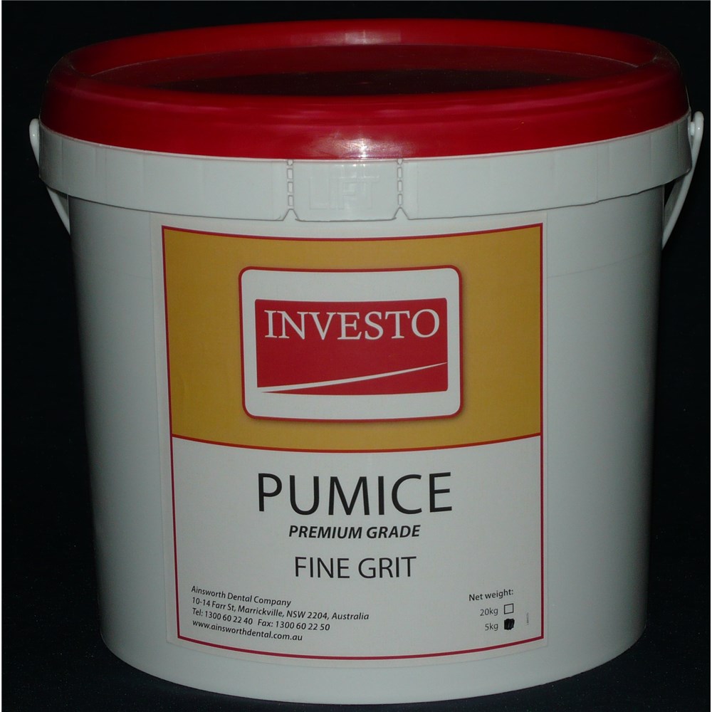Investo Fine Pumice is a superior quality fine grit abrasive agent used in many polishing procedures. It is usually mixed with water to form a thick paste and is used in conjunction with a buff or brush wheel on the lathe.