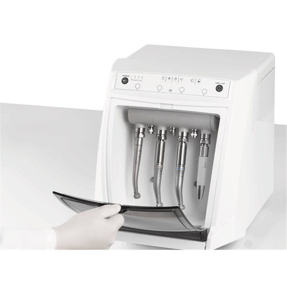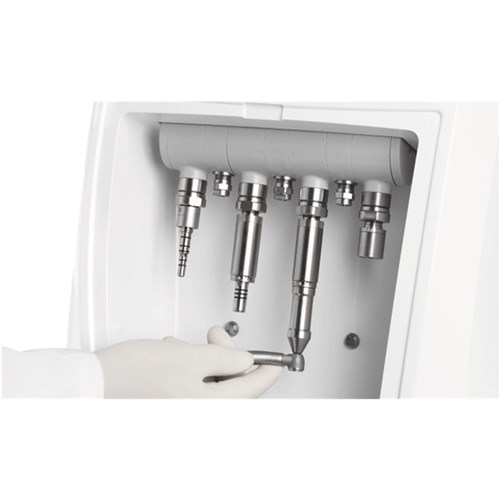 Using the specific adapter, micromotor handpieces can be placed in rotation during treatment so the detergent, disinfectant and lubricant reach every corner of the instrument