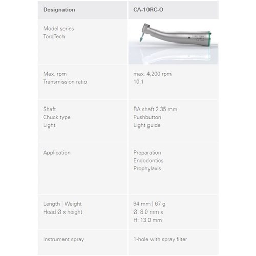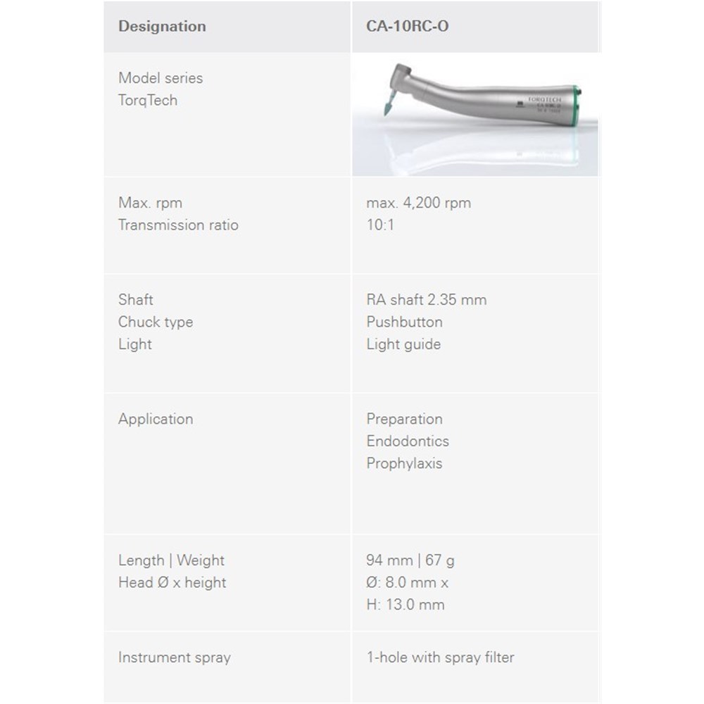 Morita TorqTech Series Handpiece - CA-10RC-O - Contra Angle - Green Band - 10:1 Speed - Reduction - Optic