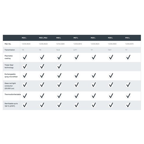 - KaVo Triple Gear technology (M25L and M05L) for excellent, smooth running without disturbing vibrations
