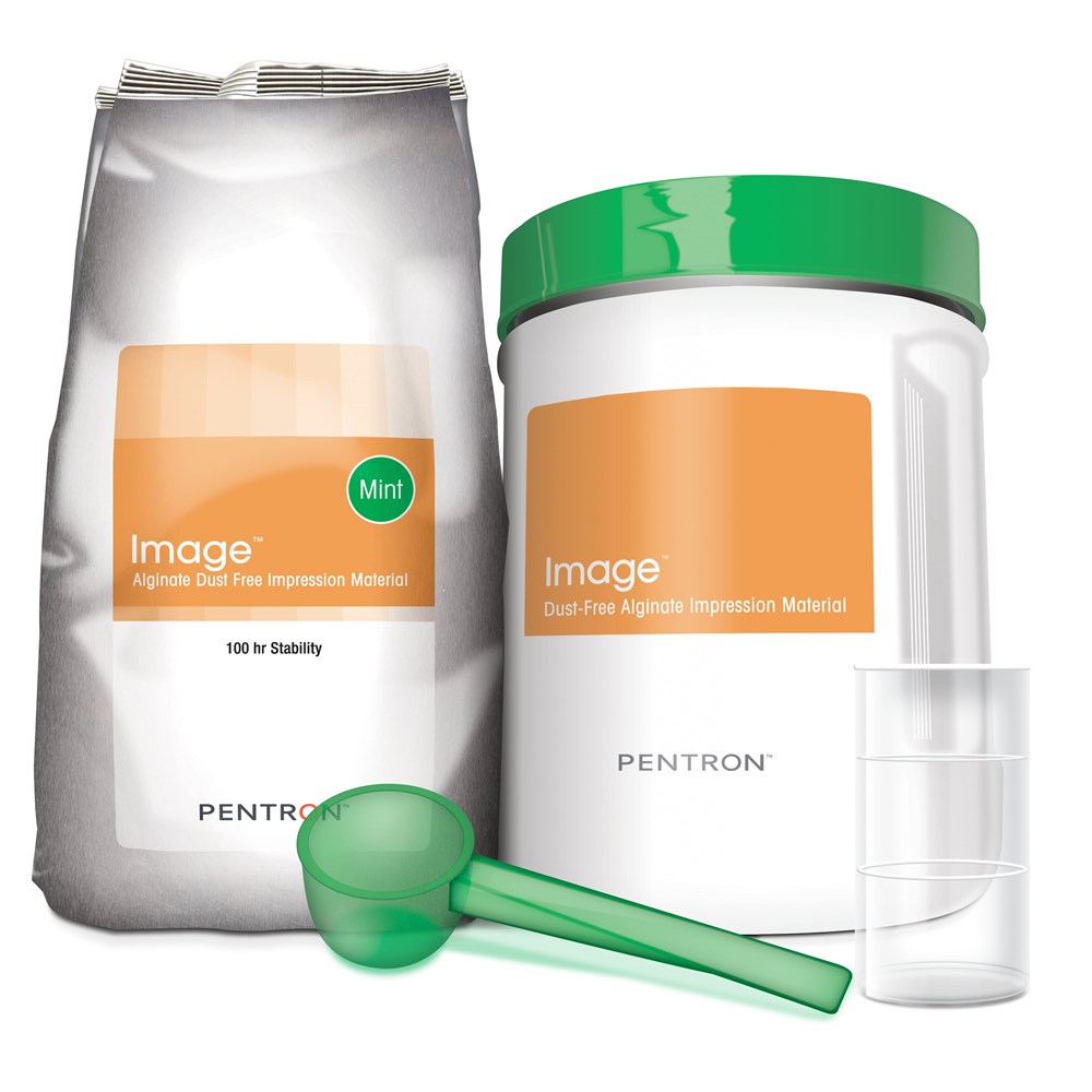 Alginate impression materials are elastic, irreversible hydrocolloid impression materials made from seaweed. They are used to make primary or preliminary impressions of a patient’s teeth and gums to obtain diagnostic study models, which are the positive reproductions of the teeth and surrounding structures. This colloidal material forms a gel when the powder is mixed with water. It solidifies into an elastic mass capable of producing a negative reproduction of the oral cavity (an impression). They are also used to fabricate bleaching trays and mouth guards. Alginate is the most universally utilized impression material in dentistry. Image Alginate is a green-coloured, mint flavoured alginate and comes in two options Regular Set, Fast Set.