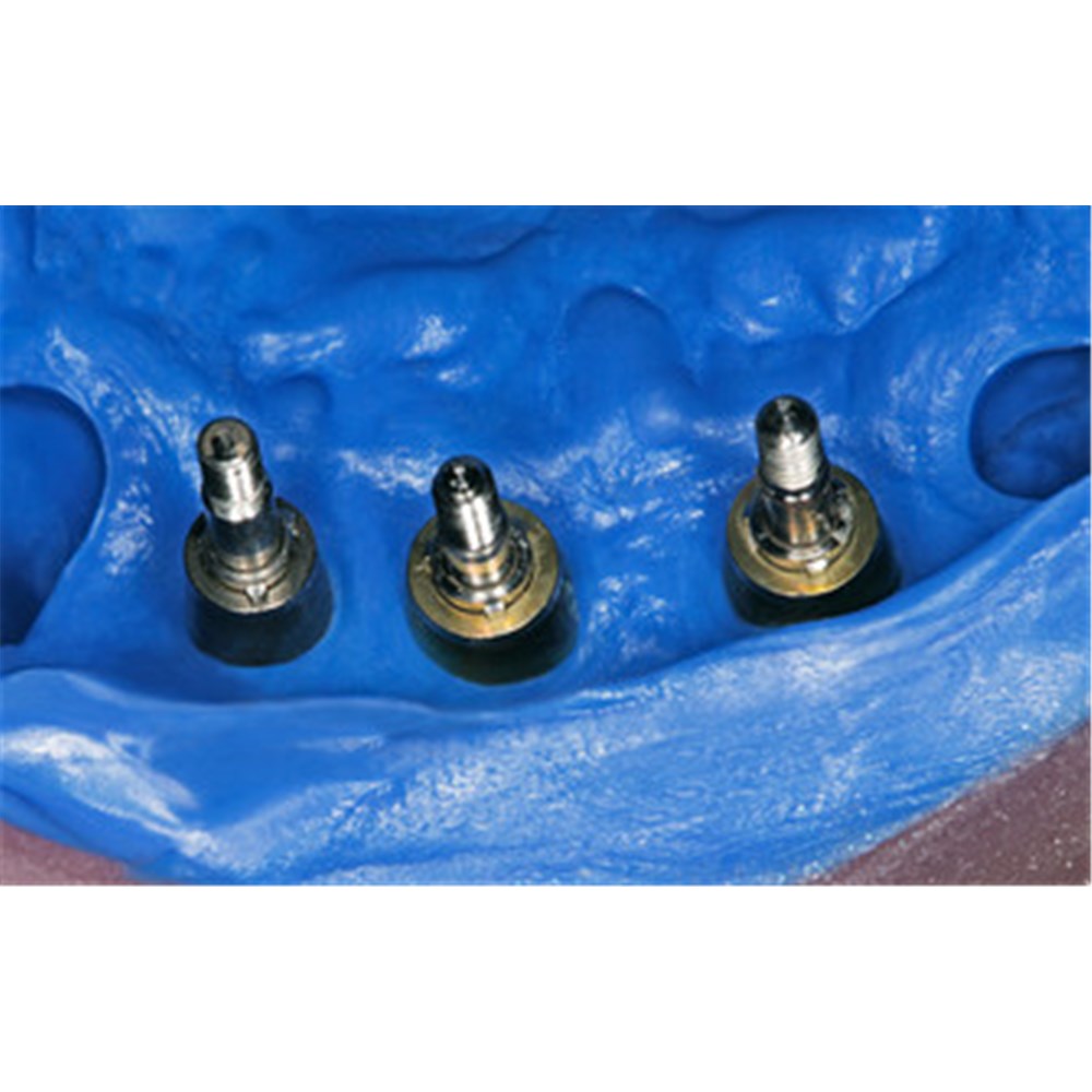 Honigum Pro Heavy is also ideally suited to taking implant impressions. Thanks to its unique structure, the material flows particularly well around the impression posts and transfer caps – but nevertheless reliably remains at the application site.