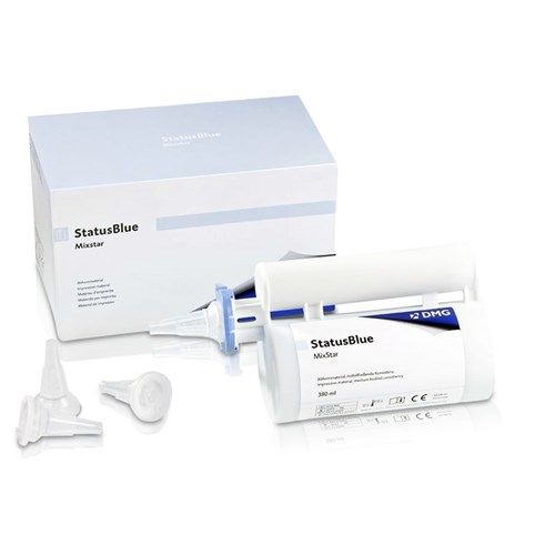 While alginates still require time-consuming hand-mixing StatusBlue is mixed quickly, automatically, and precisely in either the 50 ml or 380 ml cartridge. And the homogeneous, dust and bubble-free direct application of the material into the tray ensures precise and clean processing. StatusBlue in the 50 ml Automix cartridge can be used in the same delivery system as Luxatemp (DMG) to ease the treatment process and daily practice routines.