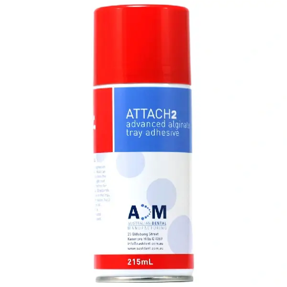 Attach2 was designed to dry almost immediately when sprayed on impression trays. This means that cohesive failure of the Attach2 adhesive resin is minimised and the alginate can be placed in the tray almost immediately.