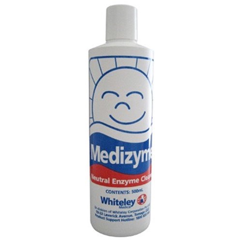 MEDIZYME is a specialised enzymatic detergent solution that is capable of removing blood and other protein deposits. MEDIZYME rapidly solubilises and disperses blood, body tissue, carbohydrates, mucopolysaccharides, lipids and other proteinaceous soils. When combined with physical cleaning, MEDIZYME provides an effective method for cleaning complex instruments. MEDIZYME is effective in hard and soft water.