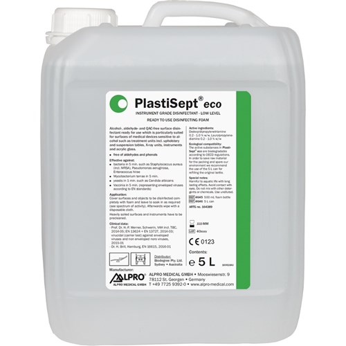 Free of alcohol and aldehydes – therefore particularly mild to surfaces. Suitable for alcohol sensitive surfaces including plastics and metal.
