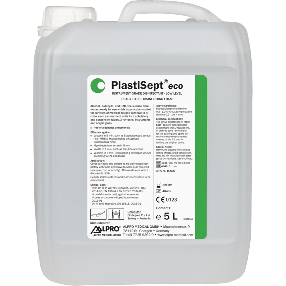 Ready to use alcohol-free cleaning and disinfecting solution without any aldehydes, phenols and QAC. Especially suitable for alcohol sensitive surfaces of medical devices such as dental units, suspension tables, x-ray machines, counter tops, hand pieces and turbines.