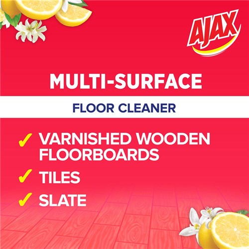 Ajax Citrus Burst Floor Cleaner has been specially developed to clean your floorboards. Use with confidence on varnished wooden floorboards, slate, tiles and other hard washable surfaces.