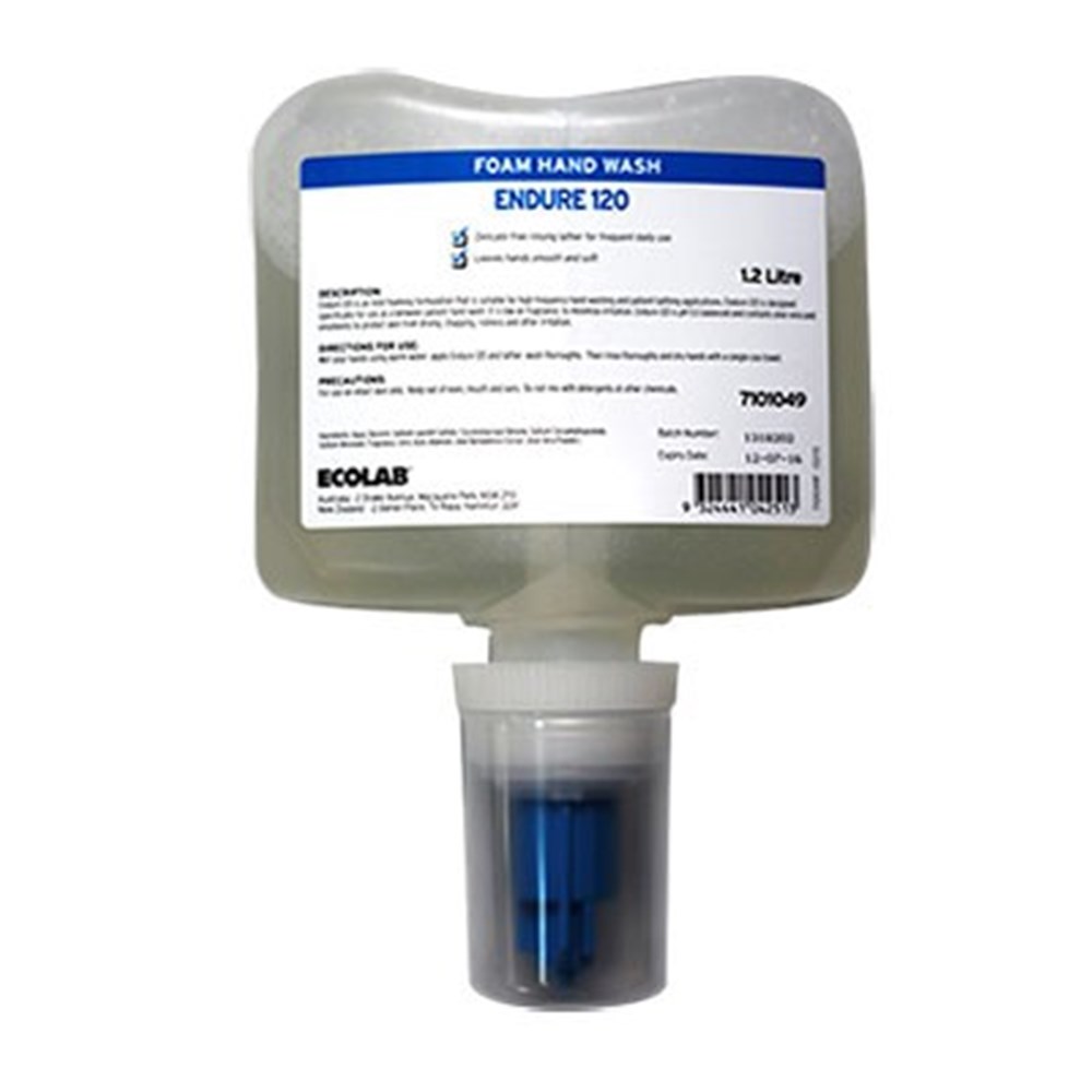 Hand hygiene is an integral part of any infection control program and should be accessible in all areas for all health care workers, patients and visitors. When not dealing with a known infection the use of non medicated skin washes is encouraged. Mild foaming formulation that is suitable for high frequency hand washing and patient bathing applications. Endure 120 is packaged specifically for use in the Ecolab foaming and NextGen dispensers.