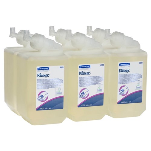 The premium formula of Kleenex® hand soap effectively cleans and cares for skin. This luxury, floral hand soap delivers the ideal hand hygiene solution for your workplace. The cost effective, high capacity 1000ml refills provide up to 1111 hand washes each, minimising maintenance time and reducing the risk of running out. Sealed, easy to load, cartridges protect the soap prior to use, preventing contamination. The easy to use, single-handed push dispensers are compact and designed to suit all locations. Kleenex® foam soaps, by Kimberly-Clark Professional®, form part of a wider range of washroom products designed to create a safer, healthier and more productive workplace.