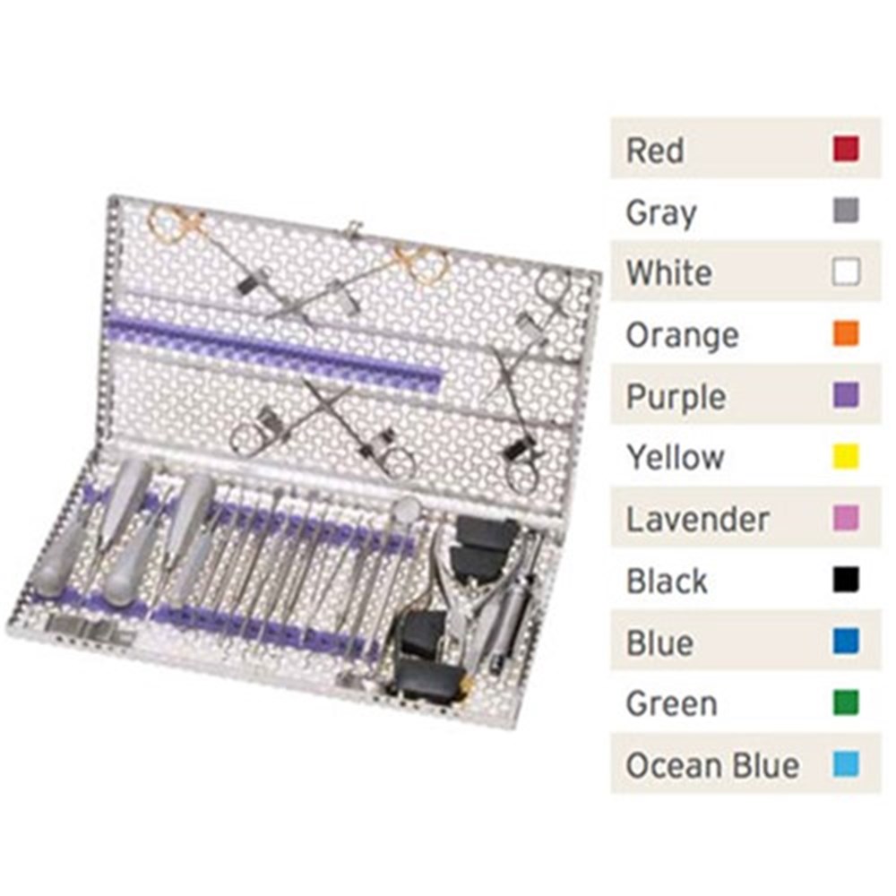 Accommodates 12 instruments, 4 elevators, 3 hinged instruments in the lid and has a separate accessory area. Exterior Dimensions 8" x 14.5" x 1.25" (203 mm x 368 mm x 32 mm).