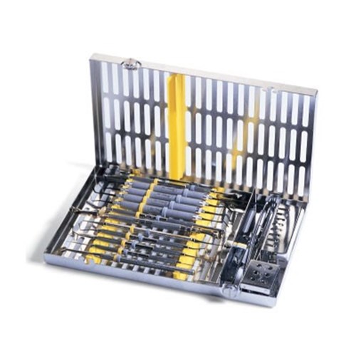 IMS™ cassettes are made of long-lasting, low-maintenance stainless steel. Soft, colored silicone rails securely hold instruments throughout the processing cycle. Available in over 100 different sizes, configurations and color options, and can be specialized to meet your needs. Learn more about how Hu-Friedy's Instrument Management System (IMS) can help your practice increase productivity, efficiency and profitability, while improving safety and compliance in your practice.