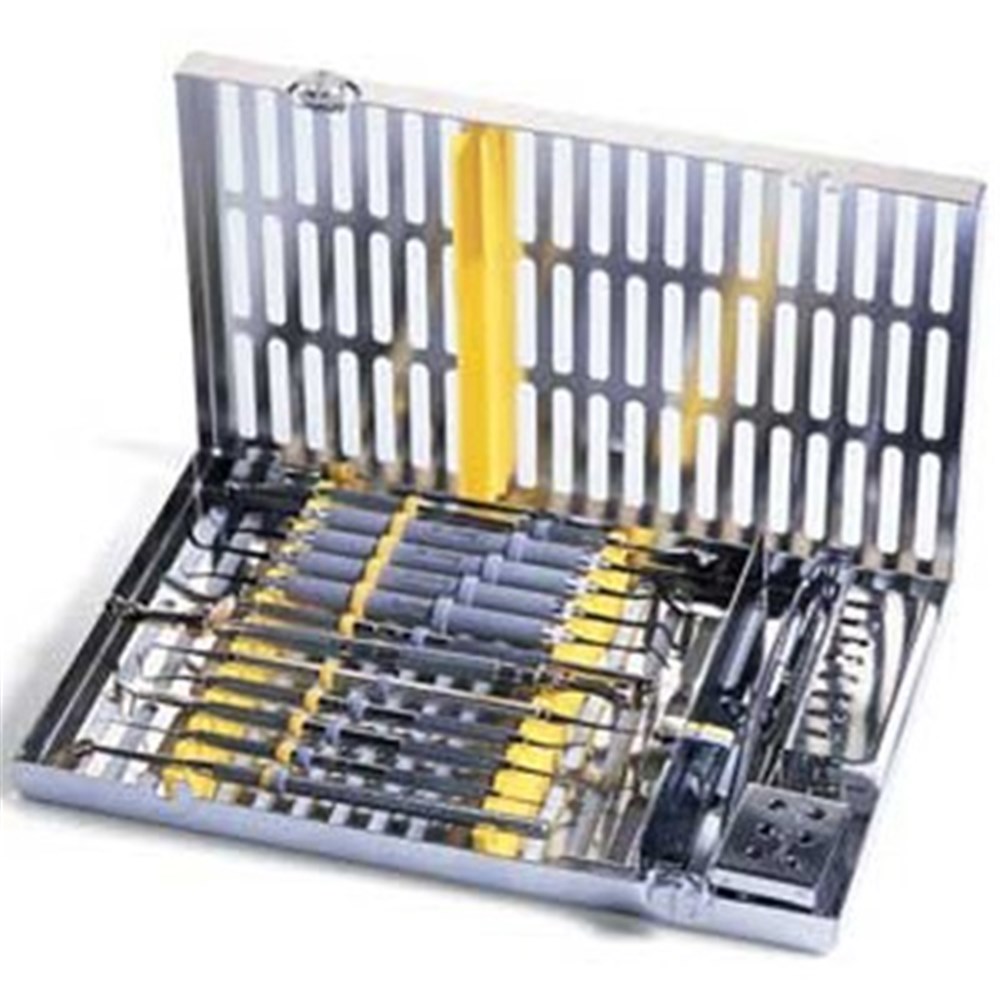 Cassette holds 12 instruments with an accessory area and fits in the SciCan STATIM or the Midmark M3 autoclave. Exterior Dimensions 6.5" x 10.5" x 1.25" (165 mm x 267 mm x 32 mm).