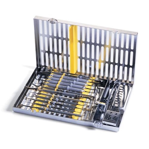 Cassette holds 12 instruments with an accessory area and fits in the SciCan STATIM or the Midmark M3 autoclave. Exterior Dimensions 6.5" x 10.5" x 1.25" (165 mm x 267 mm x 32 mm).