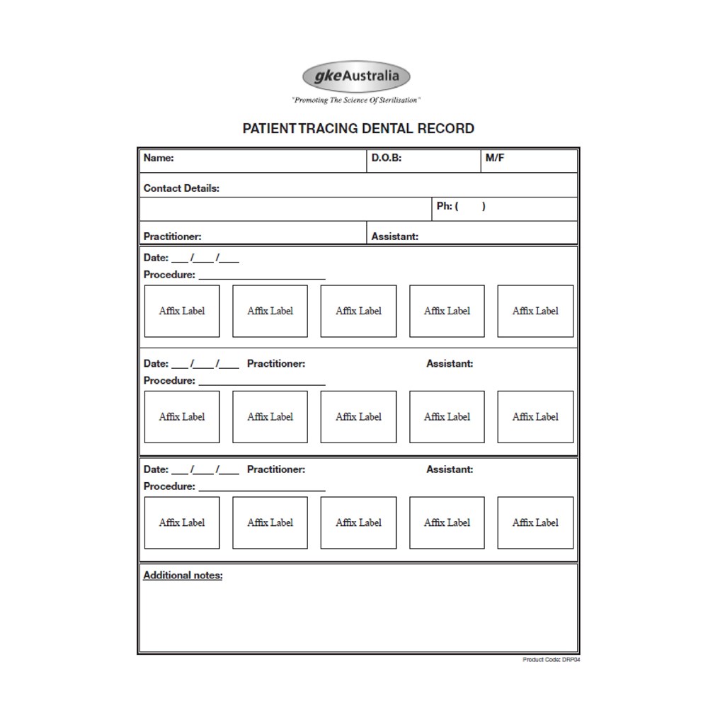 GKE Dental Patient Tracking Record Pad - 100 Pages