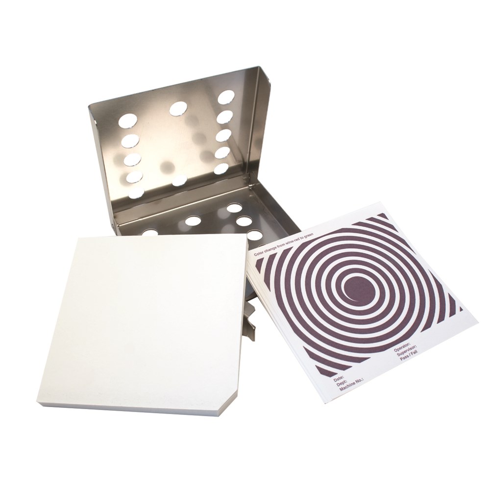 Test set for steam penetration in the autoclave. Colour changes to green to confirm correct function. Lead free and latex free.