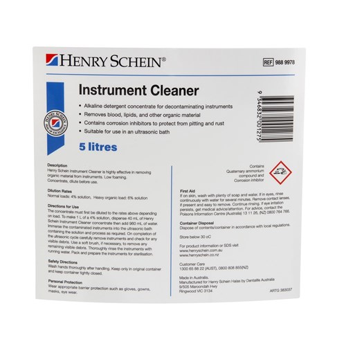 Henry Schein Instrument Cleaner is highly effective in removing organic material from instruments. Low foaming.