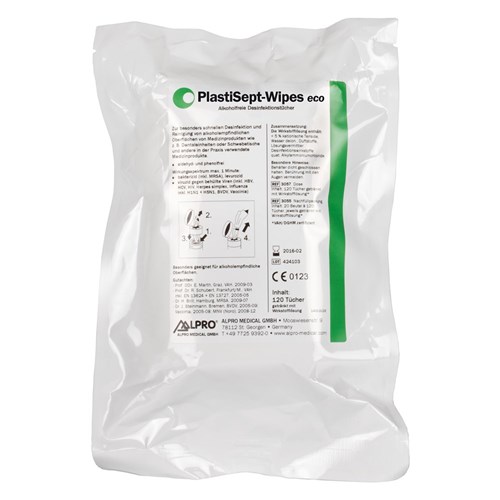 Extra large wipes allowing to cover min 2 x more surface space in comparison with standard size. Tear-proof and micro-touch technology allowing to soak up just correct amount of the liquid. Wipe off the surfaces including bench tops, equipment and handpieces with the wipes. Once every 2 weeks perform periodical wash up of the equipment surfaces using warm water and mild soap to remove the residues of the active ingredients.