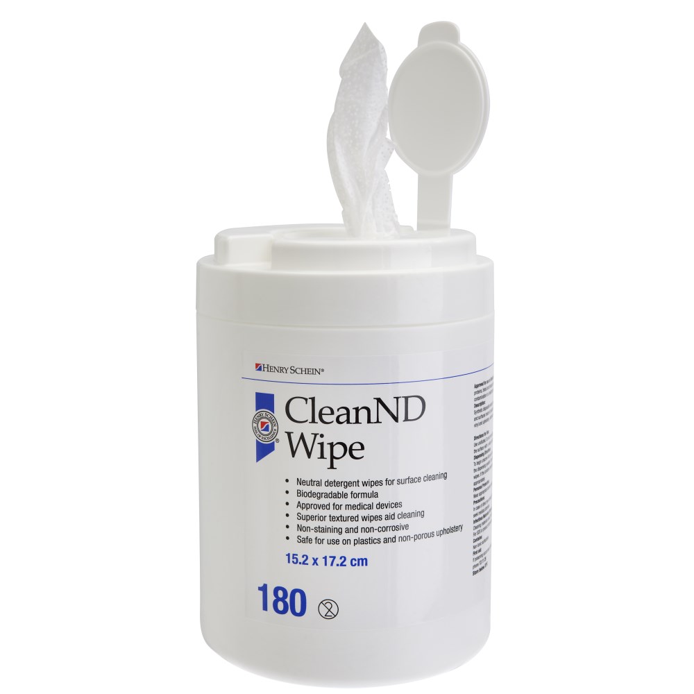 Henry Schein CleanND Wipes incorporate a high-quality wipe with a special texture to aid cleaning and leave surfaces streak free. Pre-soaked in a pH neutral, biodegradable detergent solution, these wipes are convenient and safe to use in a healthcare setting.