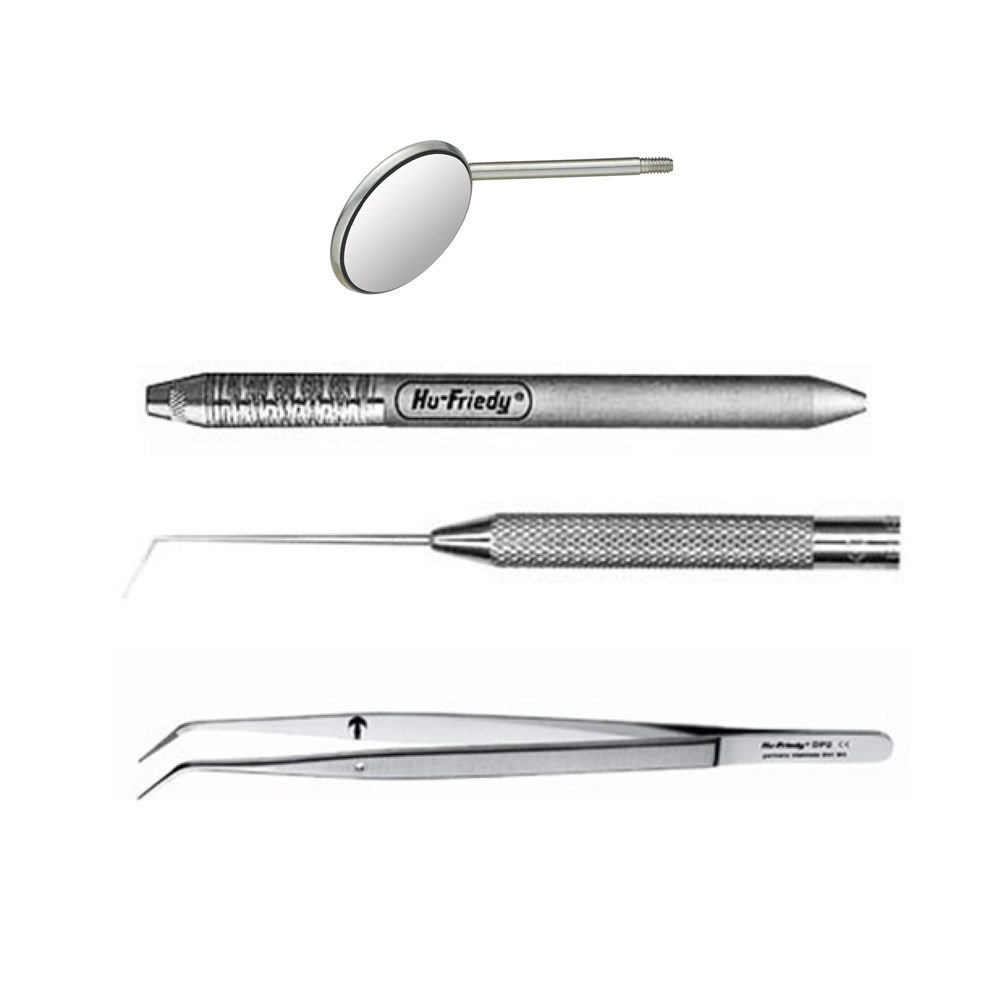 This Hu-Friedy bundle is perfect for solution for your general exam needs. The bundle includes college tweezers, single ended straight probes, simple stem mirror heads and handles.