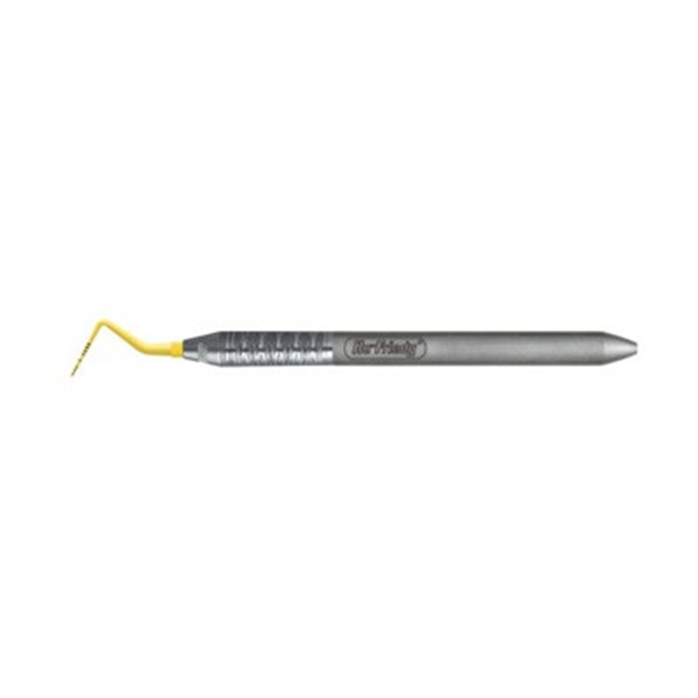 Colorvue™ probes feature a vivid yellow tip with black markings for enhanced contrast to intraoral structures in both natural and implant dentition. Optimal flexibility and a rounded tip provide greater patient comfort and acceptability. The probe tips are safe for use with implants and feature a twist-on design for easy replacement of worn tips.