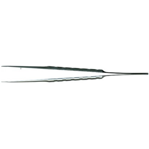 Microsurgical tissue pliers used to grasp and stabilize soft tissue. 18mm