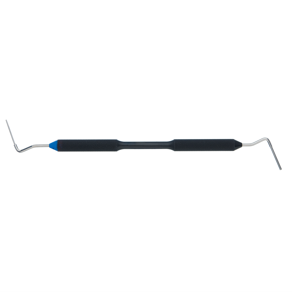 Featuring both a tapered nickel-titanium end and a stainless steel end, Buchanan Hand Pluggers can be used in any common obturation technique, including warm and cold condensation. The pluggers are also ideal for backfilling canals. Use the NiTi end for finishing off condensation procedures in even the most radically curved canals. Either end condenses and controls the movement of gutta percha under pressure. In addition, the Buchanan Hand Pluggers are fabricated of the highest grade materials for excellent durability and sterilisation.