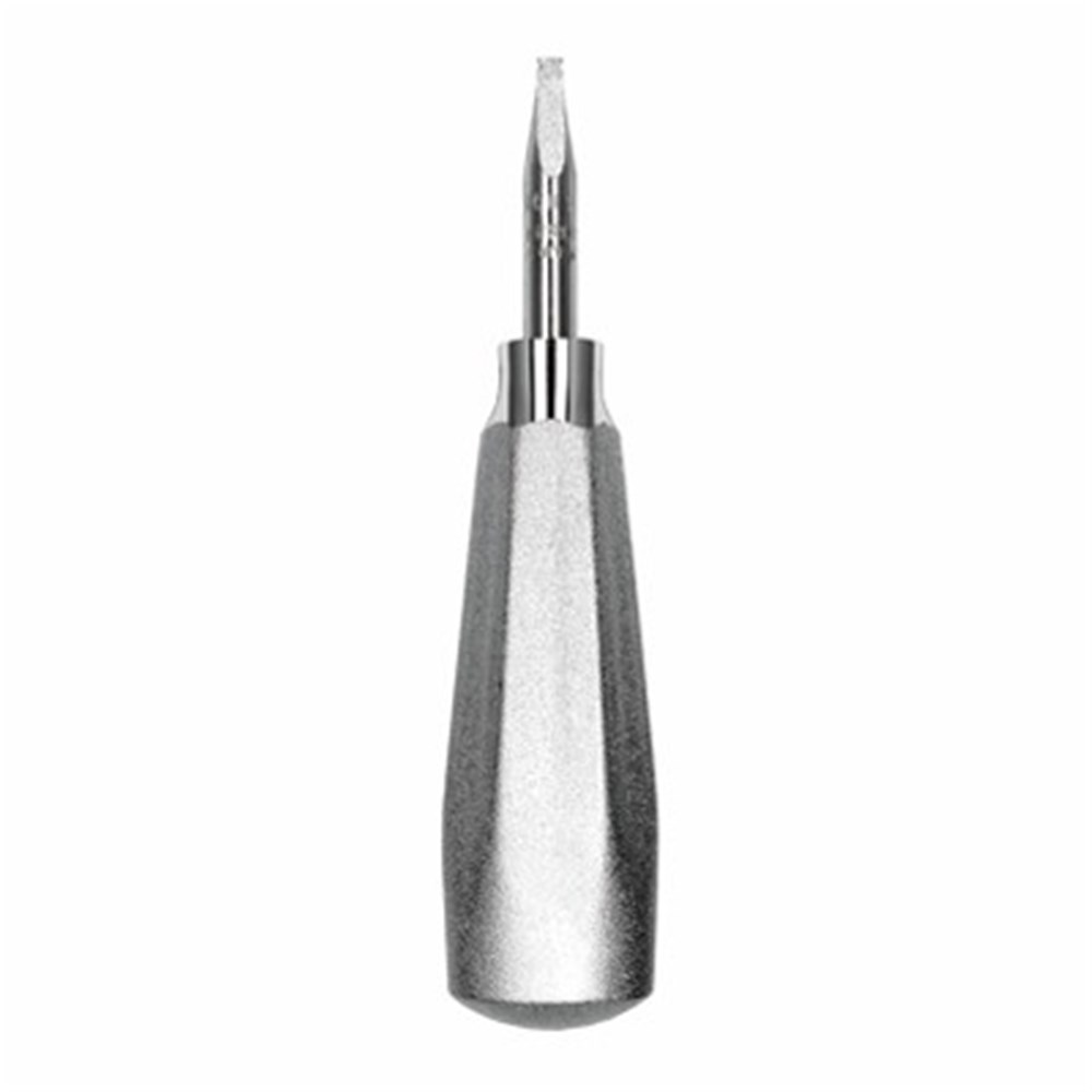 Christensen Crown Remover allows for easy crown removal after sectioning of the crown with bur (e.g. Komet H34). Two notches at the tip provide a secure grip & as the instrument is turned the notches engage the crown & break the seal of the cement.