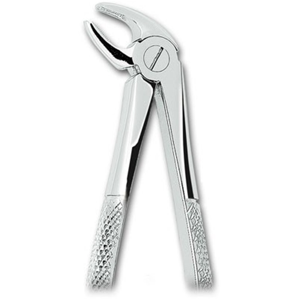 14 cm, serrated, curved, extracting forceps for childrens lower incisors and canines.