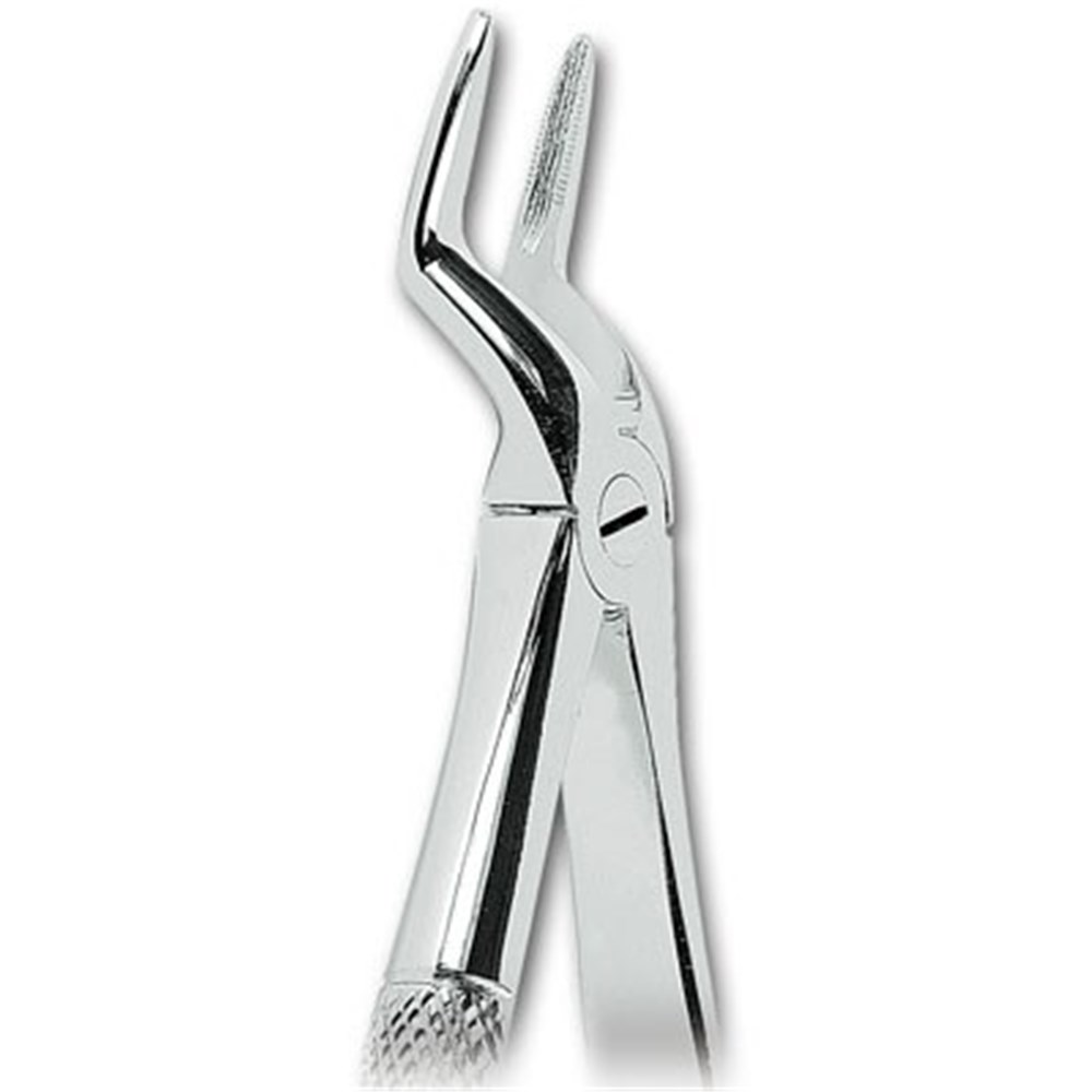 Serrated extracting forceps for upper roots.