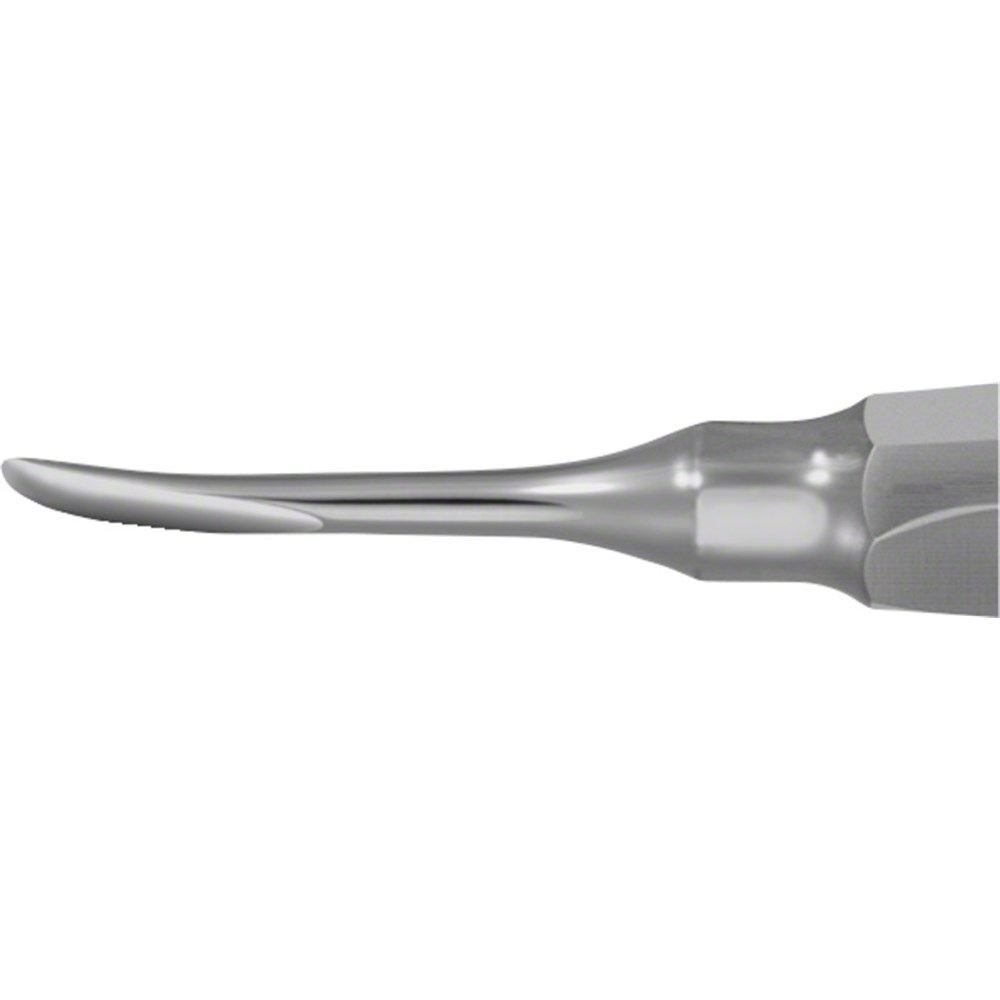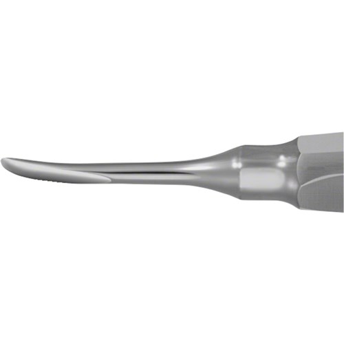 • Very Slender Working Endos • The Working ends are available in 0.5mm steps from 2.0 to 5.0mm • Gouge-like working end • Handle with depression for thumb • Easy Access to roots even in areas difficult to reach • Great sensitivity during operation • More gentle clearance of the alveoli • Better guidance • Better grip