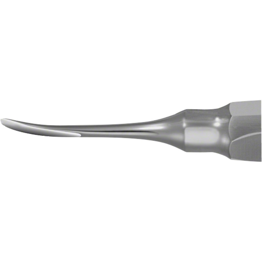 • Very Slender Working Endos • The Working ends are available in 0.5mm steps from 2.0 to 5.0mm • Gouge-like working end • Handle with depression for thumb • Easy Access to roots even in areas difficult to reach • Great sensitivity during operation • More gentle clearance of the alveoli • Better guidance • Better grip